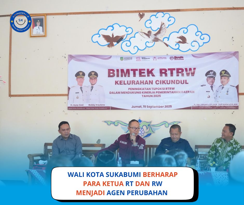 SUKABUMIKITA.ID Wali Kota Sukabumi, Ayep Zaki, menegaskan pentingnya Bimbingan Teknis (Bimtek) RT dan RW sebagai upaya memperkuat peran masyarakat dalam pembangunan daerah. Pernyataan itu disampaikan saat ia membuka Bimtek RT dan RW Kelurahan Cikundul di aula pertemuan kelurahan, Jumat (19/09/2025).
