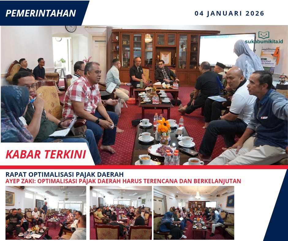 SUKABUMIKITA.ID – Pemerintah Kota Sukabumi menegaskan komitmennya dalam memperkuat pendapatan daerah melalui pengelolaan pajak yang bersih dan profesional. Komitmen tersebut disampaikan langsung oleh Wali Kota Sukabumi Ayep Zaki saat memimpin rapat koordinasi implementasi optimalisasi pajak daerah di Rumah Dinas Wali Kota Sukabumi, Sabtu (04/01/2026).