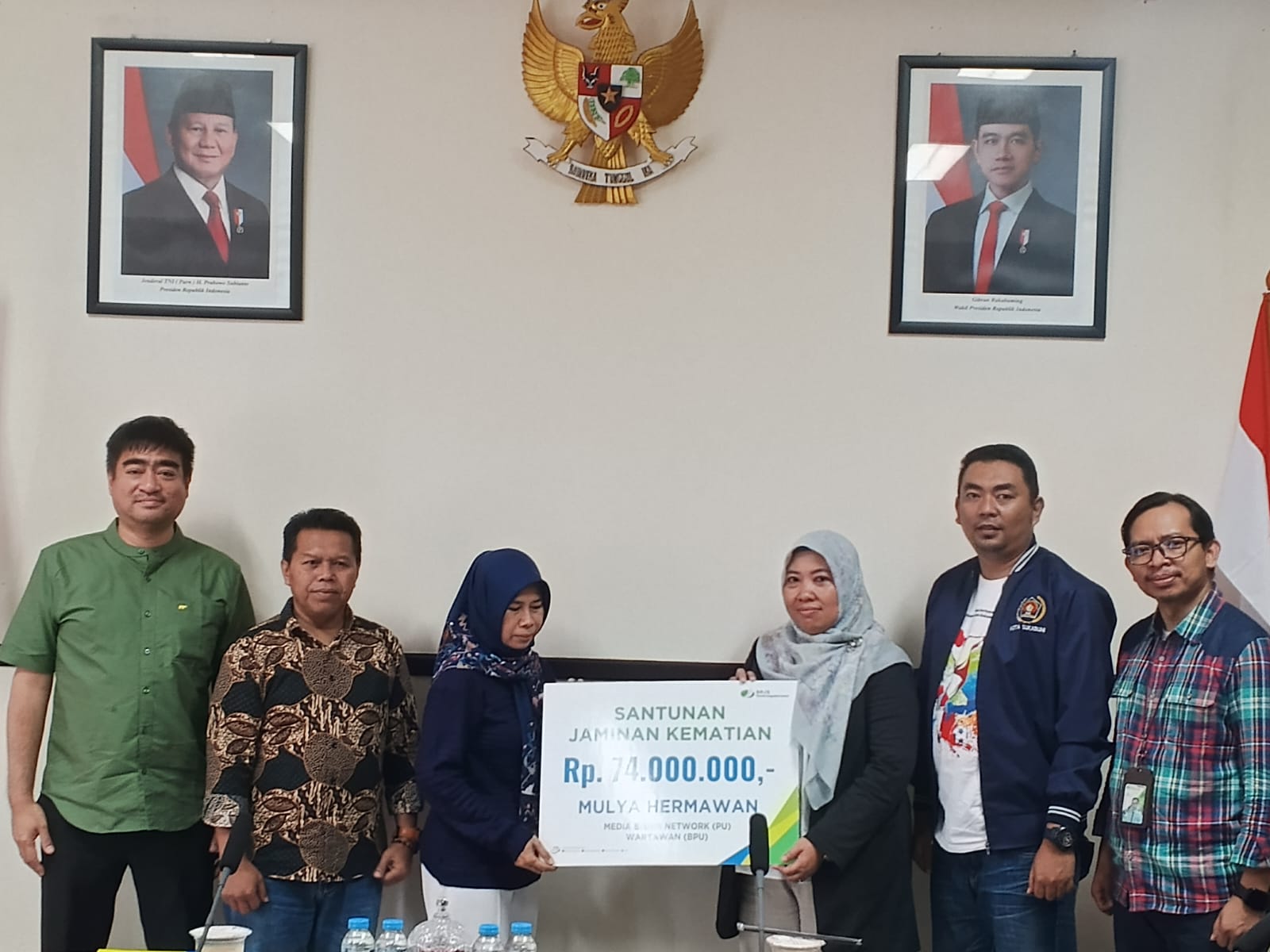 SUKABUMIKITA.ID– BPJS Ketenagakerjaan Cabang Sukabumi menyerahkan santunan Jaminan Kematian (JKM) kepada istri almarhum Mulya Hermawan, Ketua Persatuan Wartawan Indonesia (PWI) Kabupaten Sukabumi periode 2024–2025. Kegiatan penyerahan santunan tersebut dilaksanakan pada Jumat (12/12/2025) dan dihadiri perwakilan pengurus PWI Kota dan Kabupaten Sukabumi.