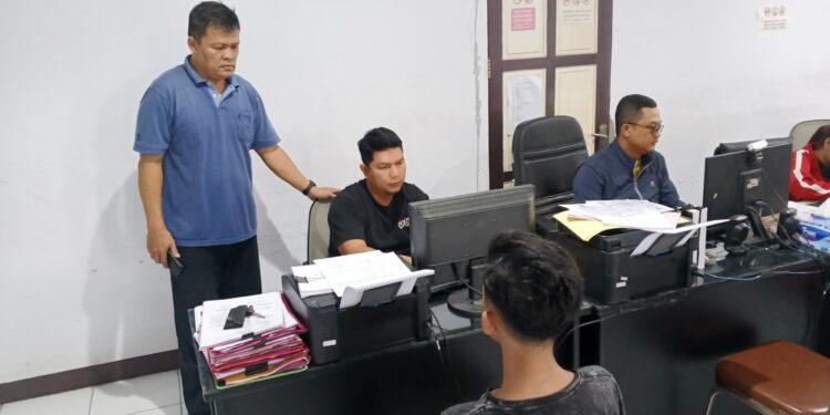 Petugas kepolisian dari Polsek Cikole, sedang melakukan pemeriksaan terhadap terduga pelaku. Ft: Istimewa.