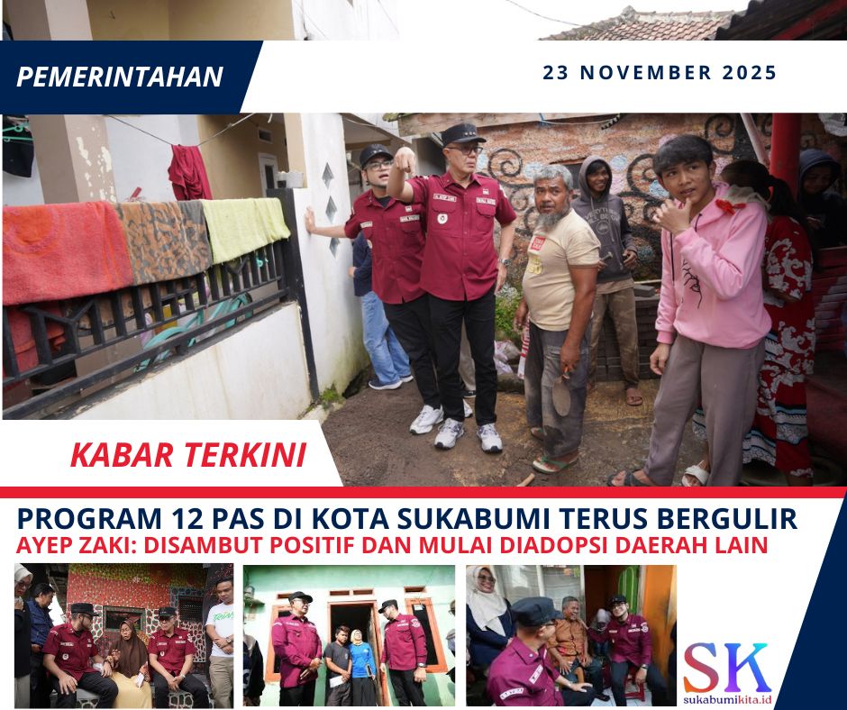 SUKABUMIKITA.ID — Wali Kota Sukabumi, Ayep Zaki, bersama Wakil Wali Kota, Bobby Maulana, kembali menegaskan komitmennya untuk menggulirkan program “Ayeuna Waktuna Berbagi Berkah” atau 12 PAS. Program ini terus menjadi wujud nyata kepedulian Pemerintah Kota Sukabumi terhadap masyarakat yang membutuhkan. Komitmen tersebut disampaikan saat pelaksanaan kegiatan 12 PAS di Kelurahan Sindangsari, Kecamatan Lembursitu, Ahad (23/11/2025).