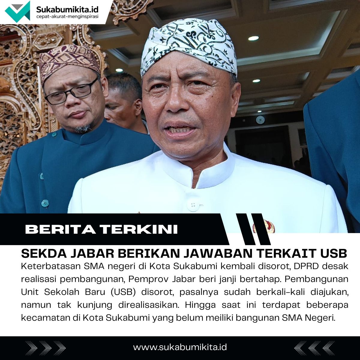 SUKABUMIKITA.ID – Ketersediaan sekolah menengah atas (SMA) negeri di Kota Sukabumi kembali menjadi sorotan. Ketua DPRD Kota Sukabumi, Wawan Juanda, mengaku kecewa terhadap komitmen Pemerintah Provinsi Jawa Barat dalam penyediaan unit sekolah baru (USB).