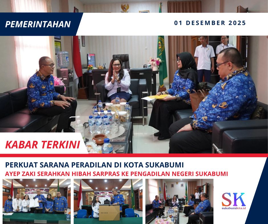 SUKABUMIKITA.ID – Pemerintah Kota Sukabumi menunjukkan komitmennya dalam memperkuat sarana prasarana lembaga peradilan dengan menyerahkan hibah inventaris barang kepada Pengadilan Negeri (PN) Sukabumi. Hibah tersebut diserahkan langsung oleh Wali Kota Sukabumi, Ayep Zaki kepada Ketua PN Sukabumi, Himelda Sidabalok, pada Senin (01/12/2025) di Kantor PN Kota Sukabumi.
