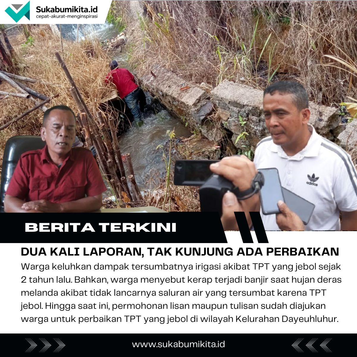 TPT Jebol 2 Tahun di Dayeuhluhur Sukabumi Belum Diperbaiki, Warga Keluhkan Banjir dan Irigasi Terganggu