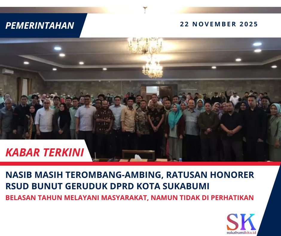 SUKABUMIKITA.ID — Ratusan pegawai honorer RSUD R. Syamsudin SH atau RS Bunut mendatangi Gedung DPRD Kota Sukabumi pada Sabtu (22/11/2025). Kedatangan mereka bertujuan meminta kejelasan status kepegawaian setelah pelantikan Pegawai Pemerintah dengan Perjanjian Kerja (PPPK) Paruh Waktu yang digelar sehari sebelumnya.